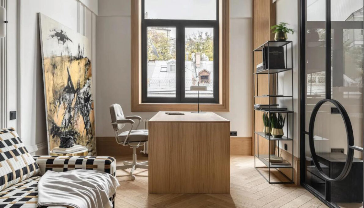 This study room design blends the essence of American Style with simplicity, emphasizing comfort and elegance. The wooden floor reflects the American preference for natural materials, providing warmth and texture.